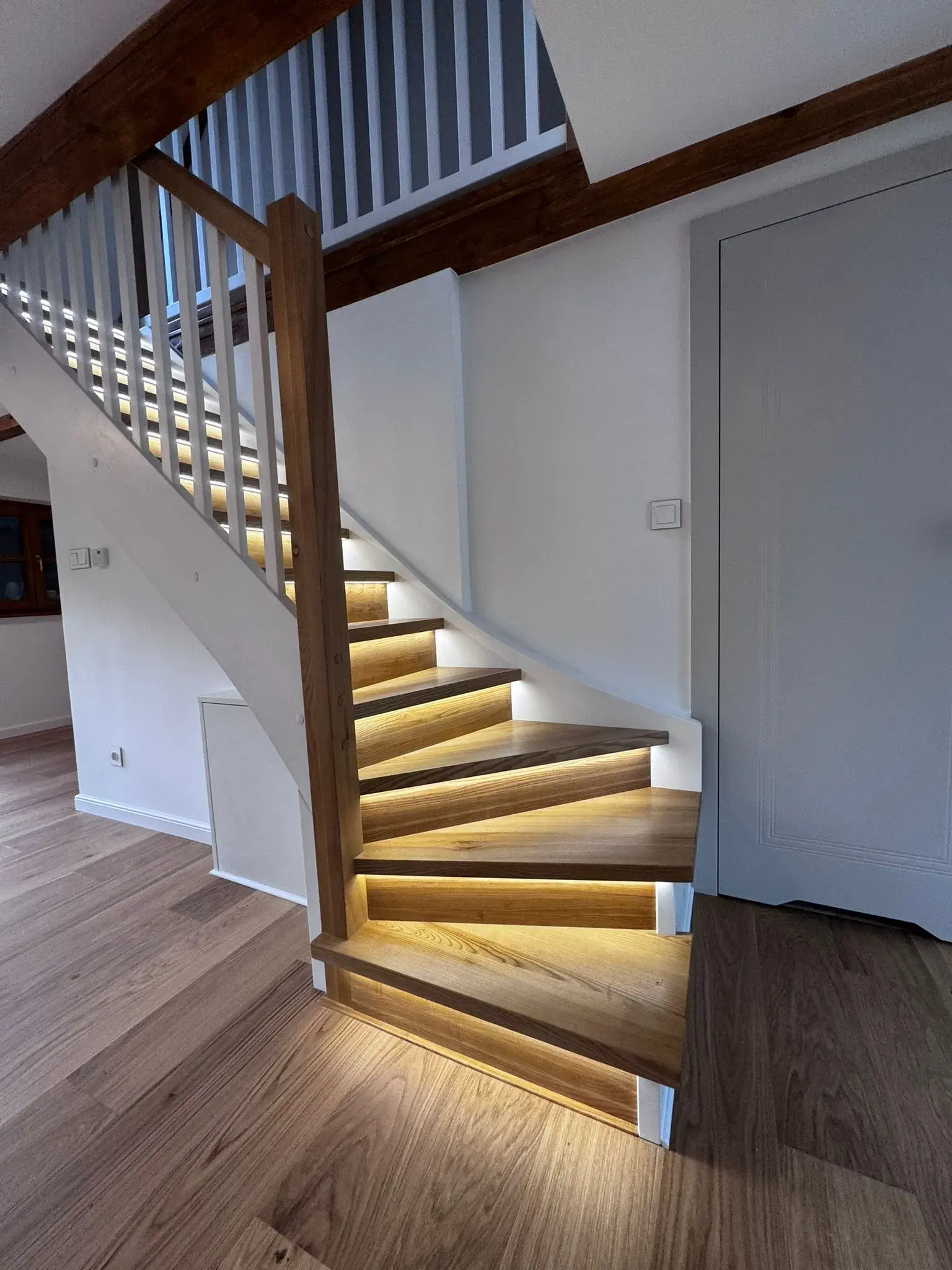Nowoczesne konstrukcje z płyt gipsowo-kartonowych, ścianki działowe i oświetlenie LED.
